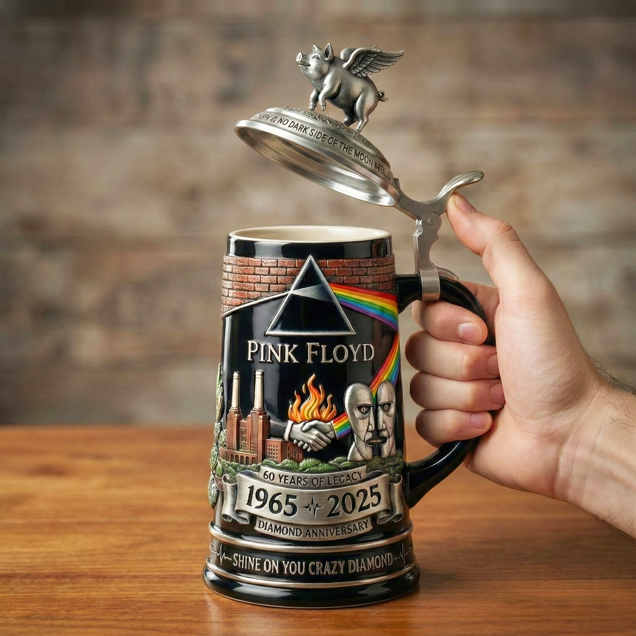 💙🥳Since 1965, Pink Floyd has redefined the boundaries of music and art. To honor their Diamond Anniversary (1965-2025), we have engineered a commemorative beer stein that serves as a physical timeline of their greatest hits. This isn't just a vessel; it’s a monument to the "Shine On You Crazy Diamond" spirit.