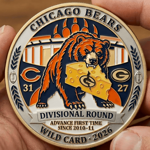 This commemorative coin marks Chicago’s return to the Divisional Round in 2026—a season defined by toughness, resilience, and belief in navy and orange.