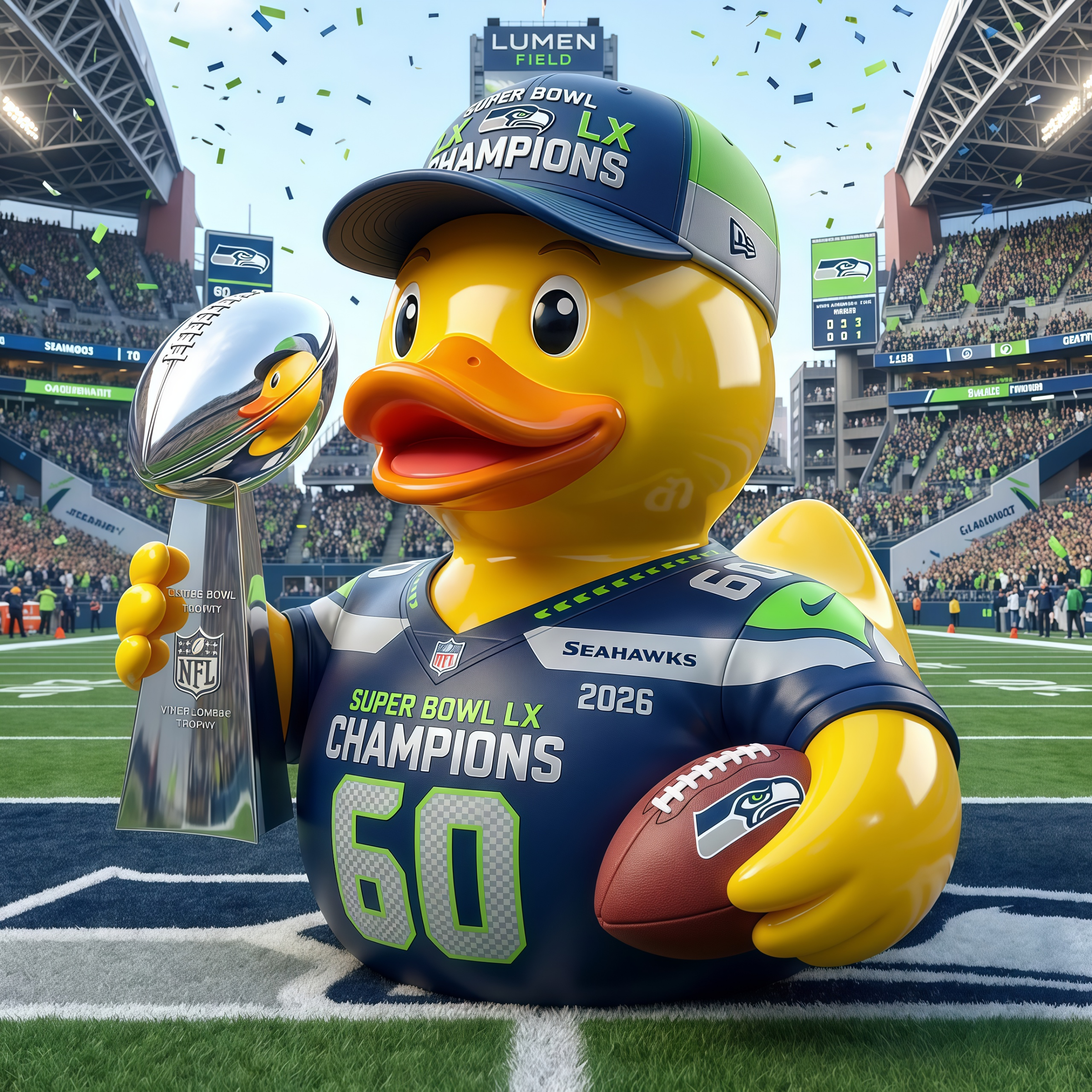 🏆 Celebrate the unforgettable 2025 Super Bowl victory with this premium Seattle Seahawks Champions Rubber Duck — a bold, high-gloss collectible that perfectly captures the pride, power, and championship spirit of a season Seahawks fans will never forget.