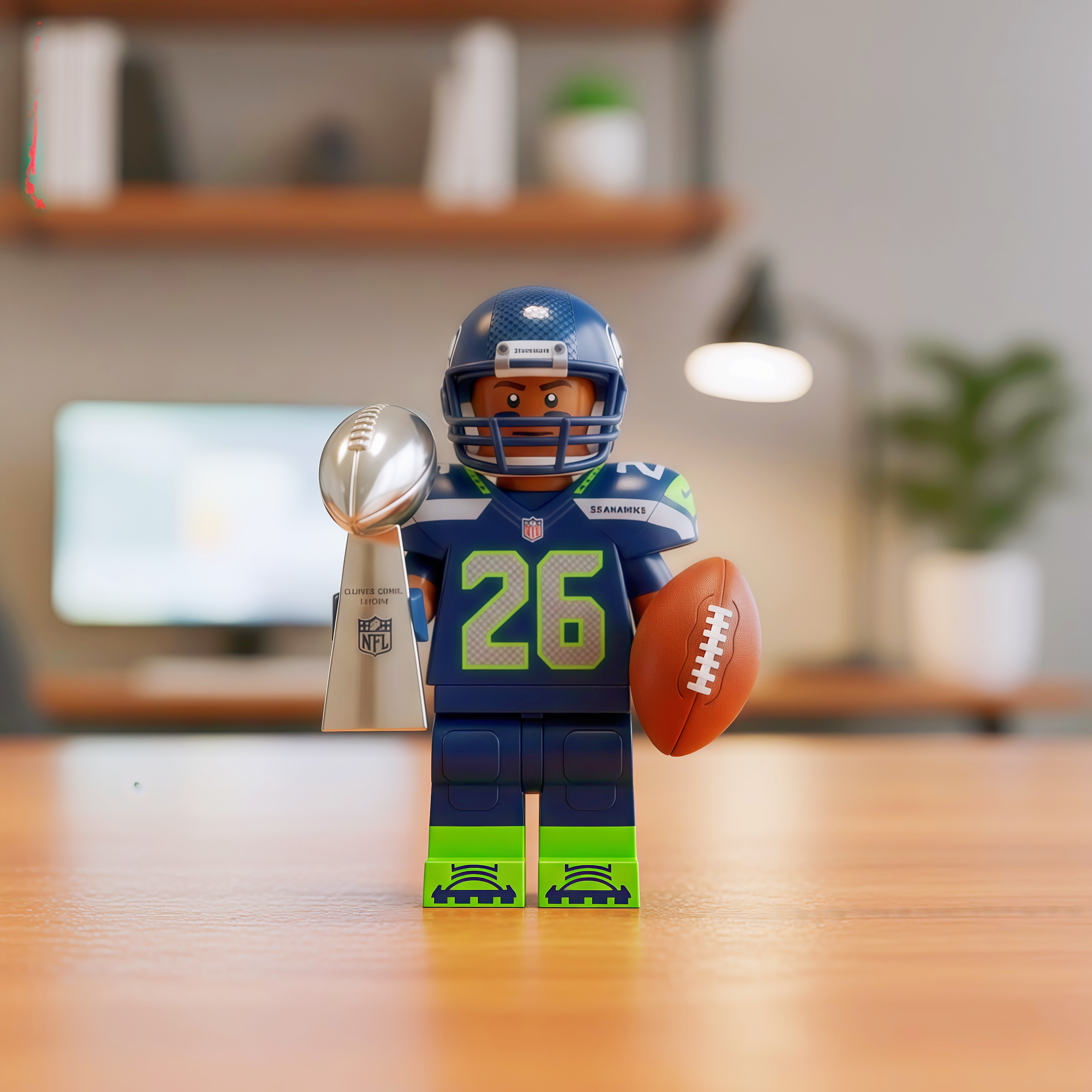✨This iconic mini figure captures the spirit of the Seattle Seahawks as they rose to the pinnacle of football, clinching their second Super Bowl championship with a decisive 29-13 victory over the New England Patriots in Super Bowl LX.