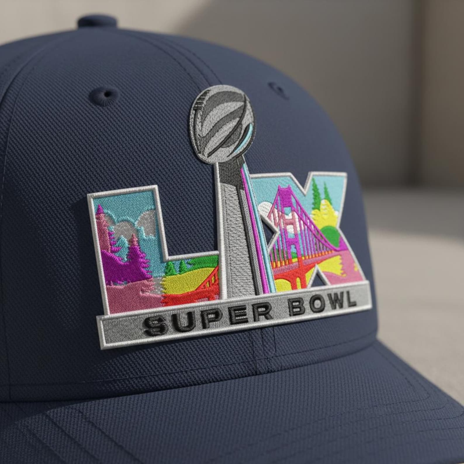 Featuring the iconic Lombardi Trophy standing tall against a vibrant scenic backdrop with landmark-inspired elements, this design captures the excitement, prestige, and energy of the biggest game of the year.